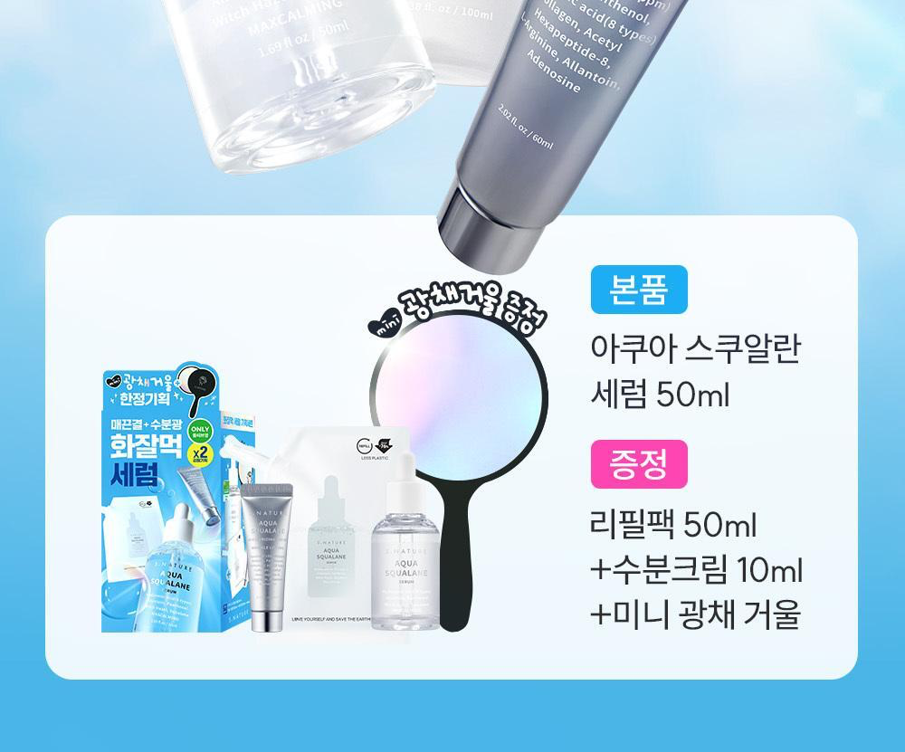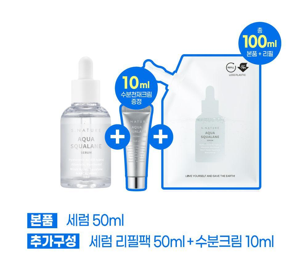 S-Nature 水角鯊烷精華液 50ml +50ml 補充裝 +10ml 保濕霜+迷你光彩鏡