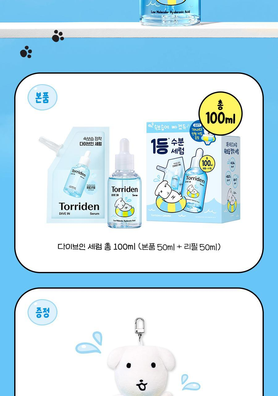Torriden Dive-in低分子透明酸精華液 50ml+50ml+Ganadi娃娃鑰匙圈